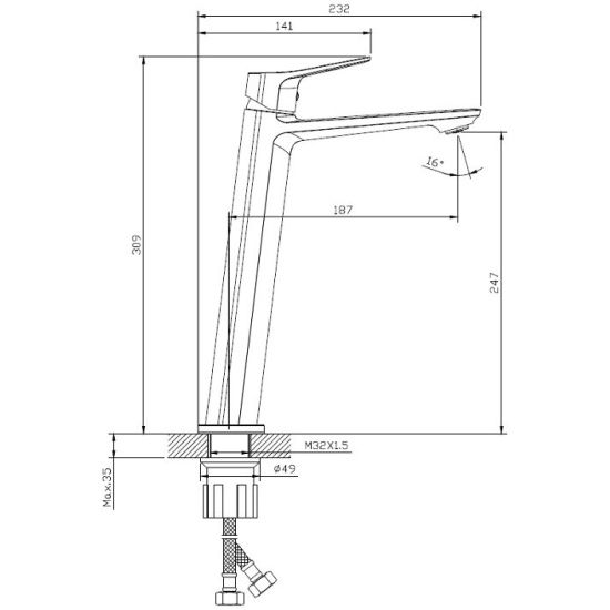 Смеситель для раковины DQ высокий Leipzig хром (DA1762001)
