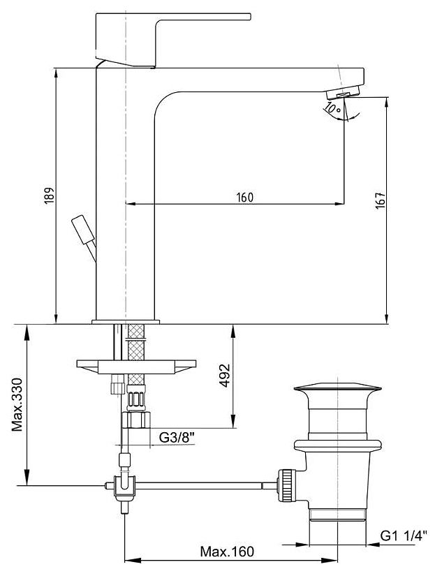 - Стандарт подводки донного клапана: G 1 1/4"