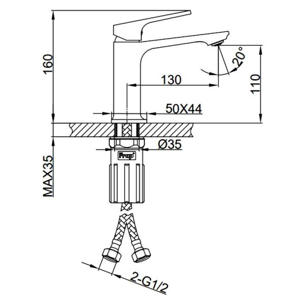 В комплекте:Гибкая подводка 1/2