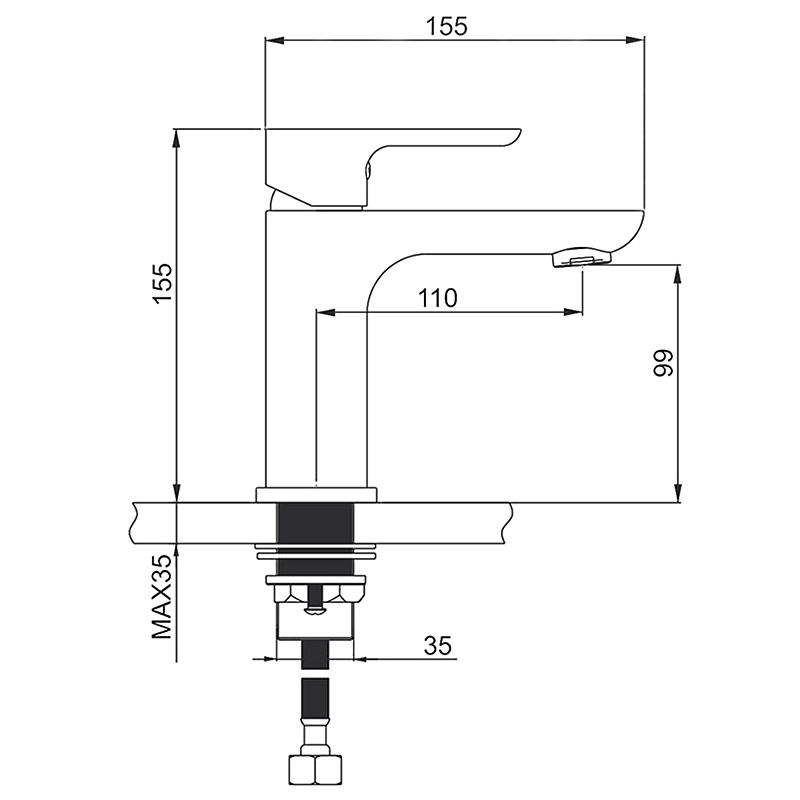 • Высота смесителя: