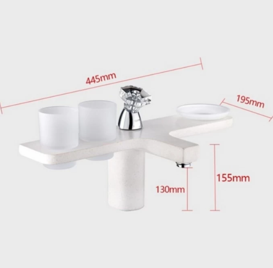 Смеситель для умывальника Gappo Giron G1096-7 — оригинальная однорычажная модель в комплекте с аксессуарами. Корпус выполнен в виде полочки, рычаг управления в форме кристалла расположен по центру. Модель изготовлена из латуни и кварцевого камня. В комплекте аксессуары для ванной комнаты: два стакана и мыльница. Цвет смесителя — красный.