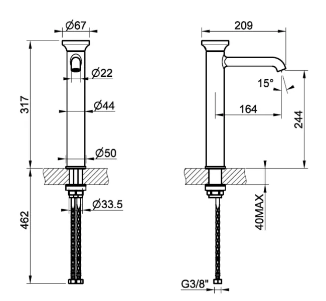 Смеситель для раковины Gessi Origini высокий — это идеальное сочетание современного дизайна и функциональности. Его стильный внешней вид в цвете Brushed Brass PVD придает сантехнике элегантность и роскошь. Отсутствие донного клапана обеспечивает более чистый и минималистичный вид, что идеально подходит для современных интерьеров.