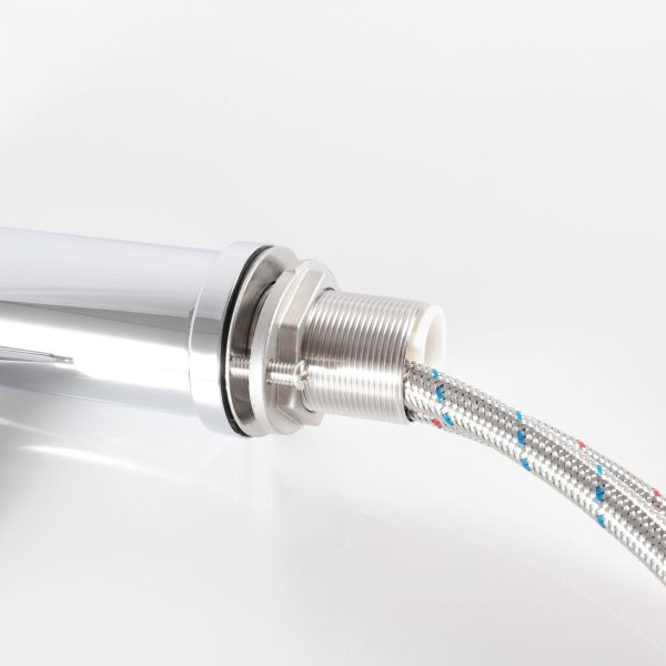 Cascada – Смелый дизайн и нестандартные формы сочетаются с испанским качеством и европейскими стандартами. Эти смесители превращают каждый поток воды в динамичное произведение искусства. Смеситель GID Berlin SS080-CH-K — это короткая версия в благородном цвете хром, которая сочетает в себе современный стиль и высокую функциональность. Изготовленный из нержавеющей стали марки SUS 404, он отличается прочностью, долговечностью и устойчивостью к воздействию воды. Название смесителя вдохновлено водопадом Берлин в Южной Африке, известным своими живописными каскадами и окружением из густой зелени, что подчеркивает гармоничное сочетание природной красоты и функциональности. Модель Berlin SS080- CH-K станет ярким акцентом в интерьере ванной комнаты, обеспечивая комфорт и надежность. Комплект: смеситель GID Berlin SS080-CH-K; 2 шланга подачи воды, дополнительные аэратор и керамический картридж; шестигранный ключ.