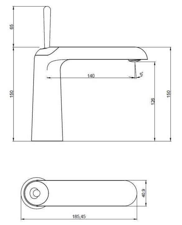 • Высота смесителя: