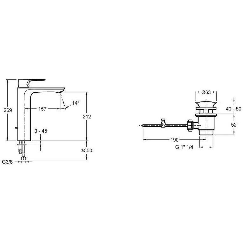 Смеситель Jacob Delafon ALEO+ E72337-CP для раковины Ограничение расхода воды смесителя (не бо... Подробнее