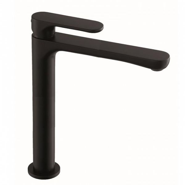 Однорычажный смеситель для раковины, высокий, с установкой на столешницу, без донного клапана. Соединение 3/8". Внимание: для чистки черных и цветных изделий можно применять только мягкую губку и мыльный раствор. Использование моющих и абразивных средств запрещено.