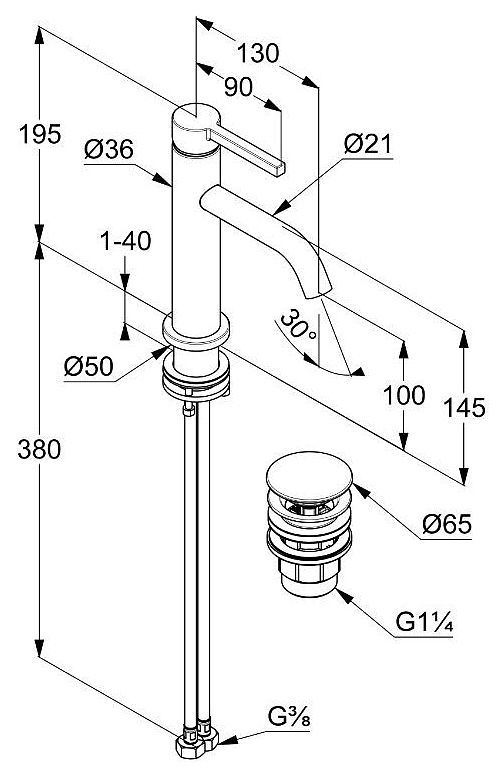 • однорычажный смеситель на умывальник 100 DN 15