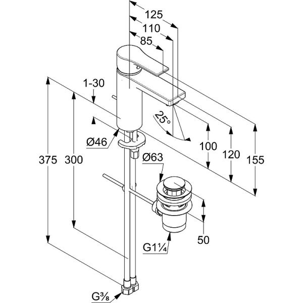 • Высота смесителя: