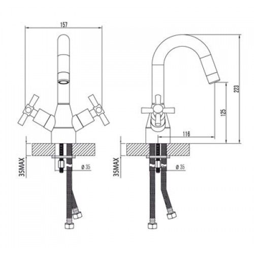 Артикул LM2207CСмеситель для умывальника с поворотным изливом