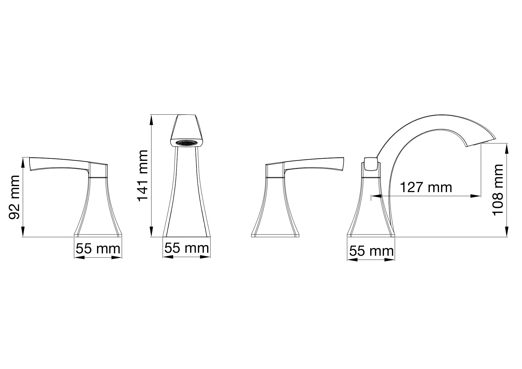 Смеситель для раковины на 3 отверстия WONZON & WOGHAND FLEX, Хром (WW-88083095-CR)