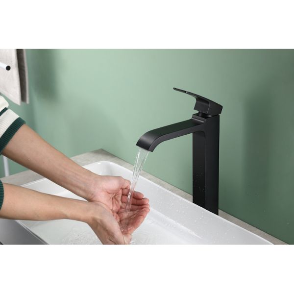 Смеситель выполнен в черном матовом цвете, который придаст вашей ванной комнате изысканность и элегантность.