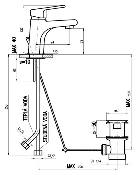 • Высота смесителя: