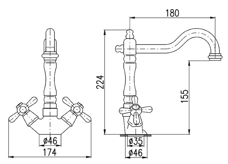 • Высота смесителя: