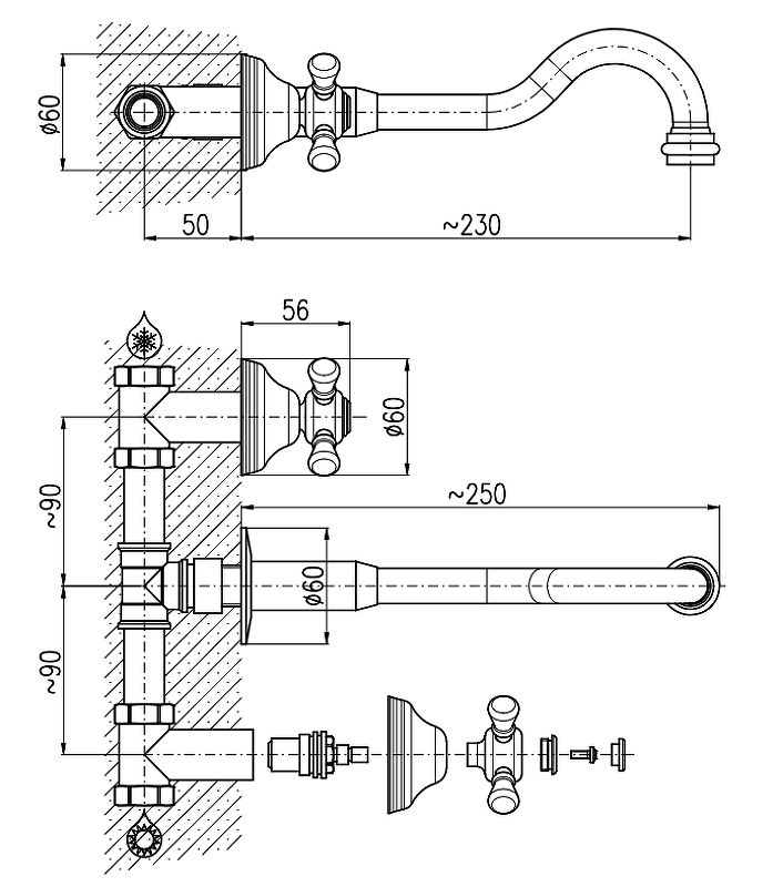 В комплекте поставки:Смеситель (внешняя и внутренняя часть).