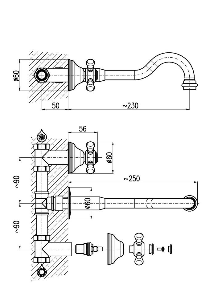 Смеситель для раковины Rav Slezak Morava retro MK531SM Бронза купить