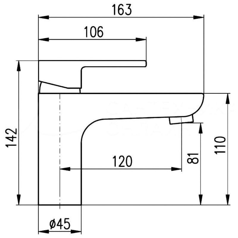 • Высота смесителя: