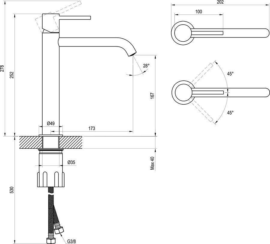 • Высота смесителя: