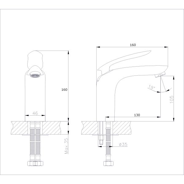 • Высота смесителя:
