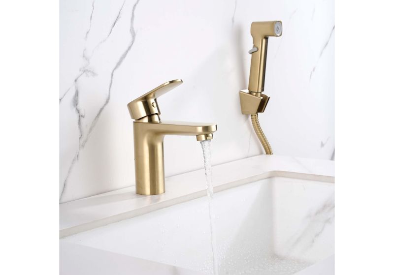 Смеситель для раковины с гигиеническим душем Aquatek Ника AQ1812BG золотоСмеситель
