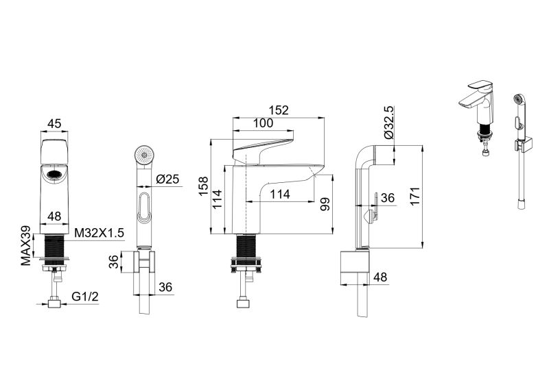 Смеситель для раковины с гигиеническим душем Aquatek Вега AQ1012BGM оружейная сталь Подробнее