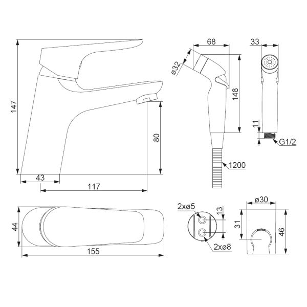 - С заботой о чистоте: к смесителю прилагается функциональный гигиенический душ.
