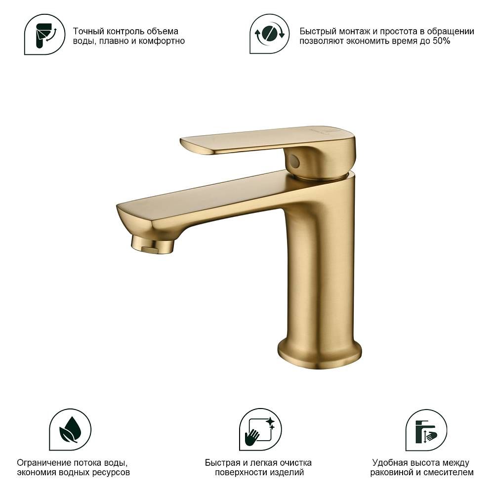 Смеситель для раковины Splenka S30.10.03 золотой сатин