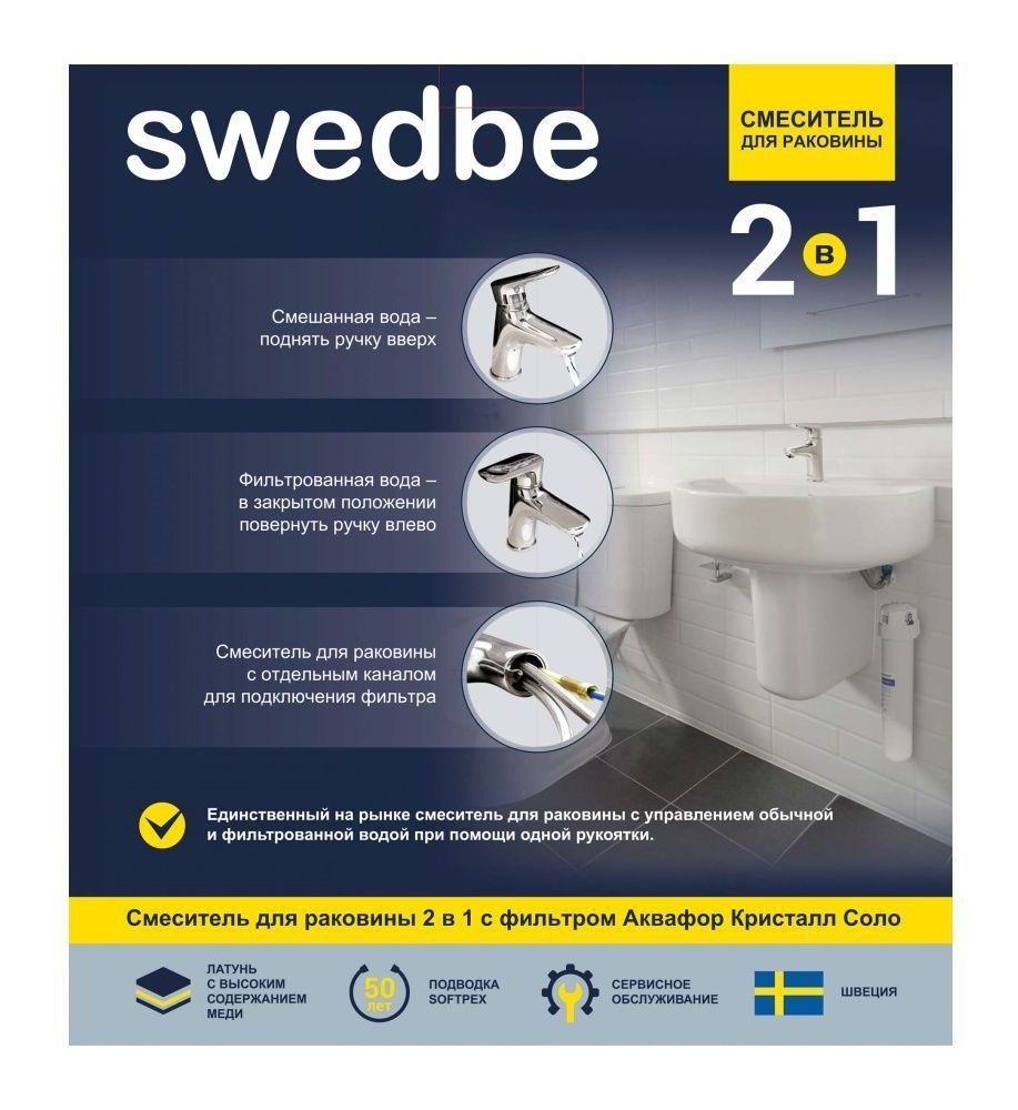 Смеситель для раковины Swedbe Venado Plus K1615S в комплекте с фильтром Аквафор Кристалл Соло хром купить