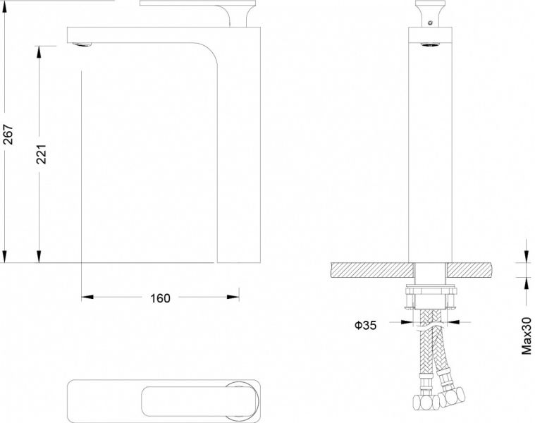 • Высота смесителя: