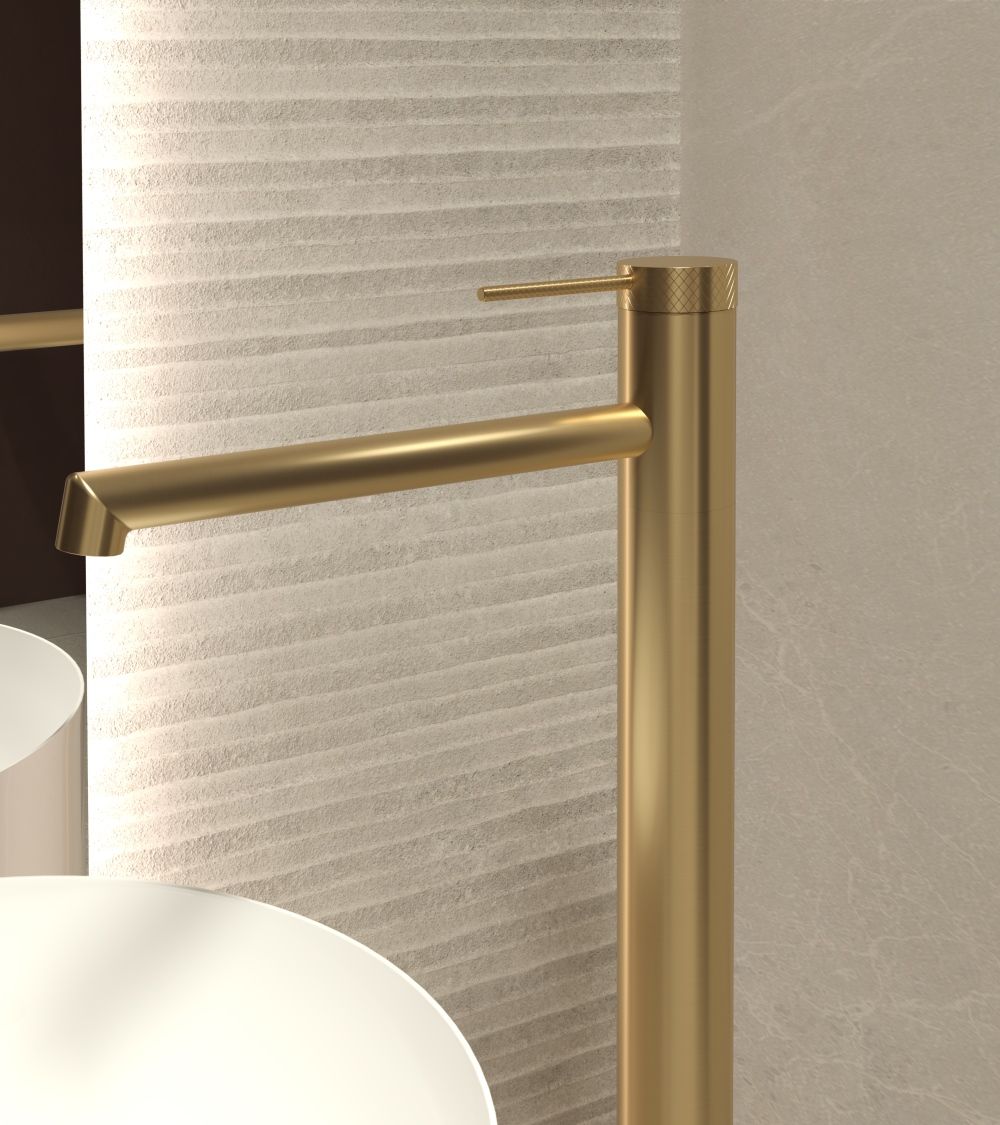 Смеситель для раковины напольный Vincea Rim VFBF-2R1BG, однорычажный, брашированное золото