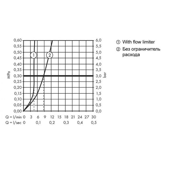 • максимальный объем расхода воды при 3 барах: 5 л/мин