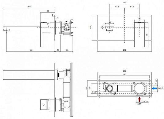 Смеситель для раковины встраиваемый однорычажный, золото Cezares UNIKA-BLI1-03/24 купить
