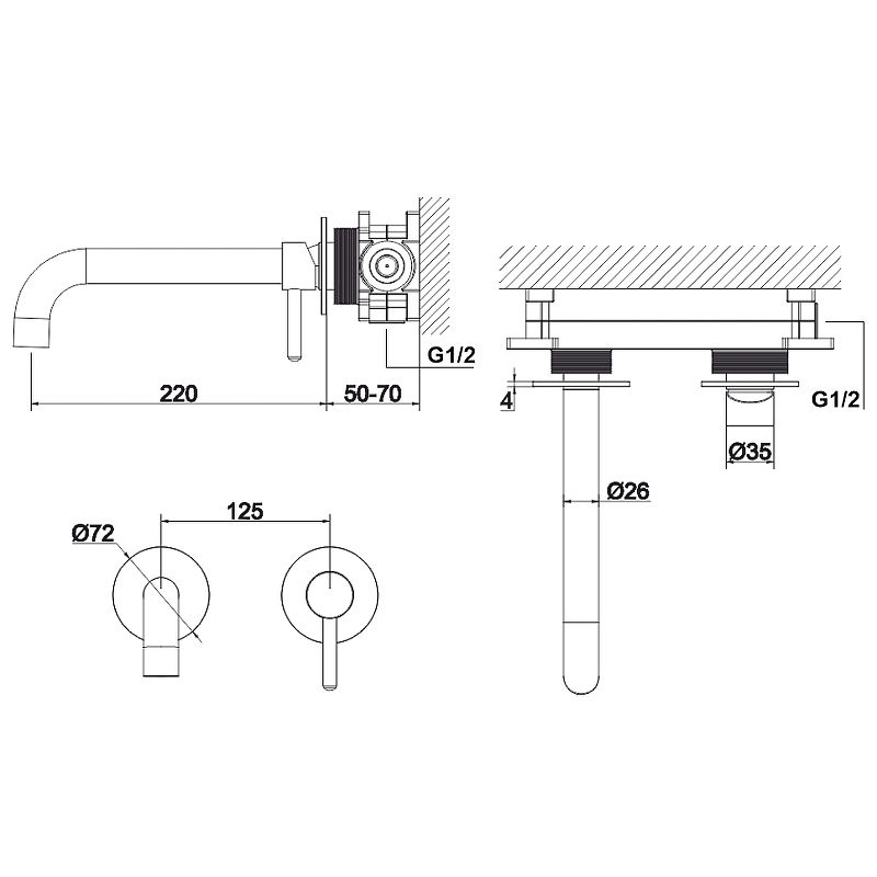 - размеры розетки: ø72 мм;