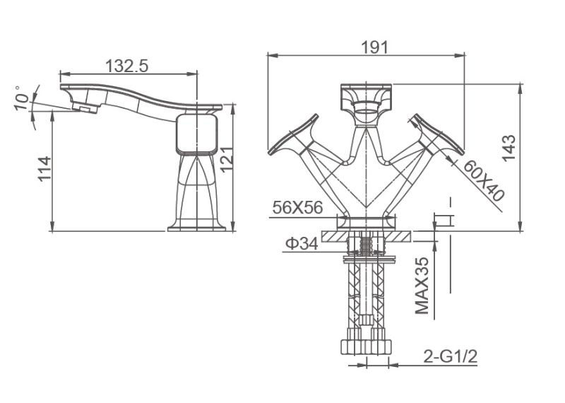 • Высота смесителя: