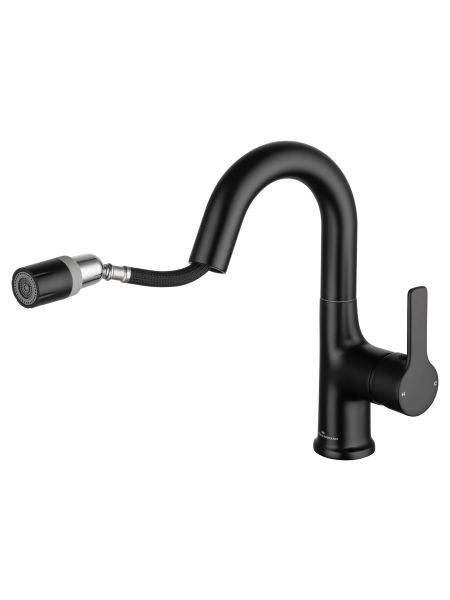 Смеситель для раковины с выдвижным изливом WONZON & WOGHAND, Черный матовый (WW-FE01L212-MB)