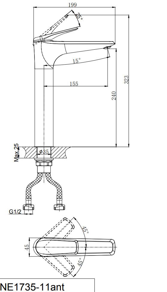 Смеситель для раковины RUSH арт. NE1735-11ant с металлической ручкой из коллекции Nevis изготовлен из высококачественной латуни и имеет рычажное управление. В смеситель установлен картридж D-35 с керамическими пластинами. Высота смесителя 323 мм. Излив литой неповоротный 199 мм. Высота излива до аэратора 240 мм. Аэратор изготовлен из пластика с нержавеющим корпусом, угол наклона - 15 гр. В комплекте универсальная присоединительная группа для установки на горизонтальную поверхность, гибкая подводка с латунными гайками 40 см - 2шт, фум-лента, индивидуальный пакет, паспорт, гарантийный талон.