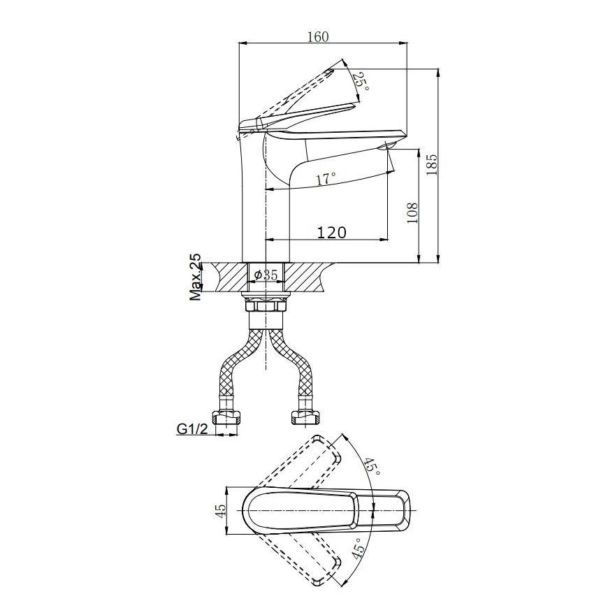 Смеситель для раковины RUSH арт. NE1735-12ch с металлической ручкой из коллекции Nevis изготовлен из высококачественной латуни и имеет рычажное управление. В смеситель установлен картридж D-35 с керамическими пластинами. Высота смесителя 185 мм. Излив литой неповоротный 116 мм. Высота излива до аэратора 108 мм. Аэратор изготовлен из пластика с нержавеющим корпусом, угол наклона - 17 гр. В комплекте универсальная присоединительная группа для установки на горизонтальную поверхность, гибкая подводка с латунными гайками 40 см - 2шт, фум-лента, индивидуальный пакет, паспорт, гарантийный талон.