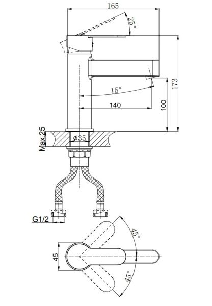 • Высота смесителя: