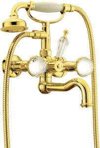 Смеситель Boheme Imperiale Presente 333 для ванны с душем важнейший предмет сантехники в любой ванной комнате. Смеситель Boheme Imperiale Presente несомненно подойдет почти на любую ванну. Особенностью двухвентильных смесителей является наличие двух раздельных вентилей для регулирования холодной и горячей воды.Латунь, кристаллы Swarovski из которой произведен смеситель Boheme Imperiale Presente 333 отличается высокой прочностью и произведена без использования вредных компонентов. Излив смесителя Boheme 333 длиной 20.2 см обеспечит идеальное и комфортное использовании при принятии водных процедур. Конструкция модели Boheme Imperiale Presente позволяет прекрасно установить смеситель на стену. Смеситель для ванны Boheme 333 выполнен в стиле ретро, что отлично прослеживается в его форме. Родина бренда Boheme – Италия, все смесители произведены с высокой точностью и грамотностью технологического процесса. Смеситель Boheme Imperiale Presente 333 для ванны с душем принесет комфорт, как в компактную ванную комнату, так и в большой санузел.