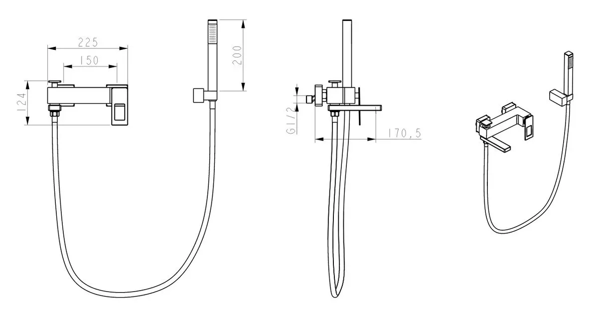• Смеситель для ванны с душевым гарнитуром