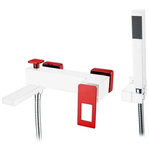 Смеситель для ванны и душа Boheme Q, с душевым гарнитуром, цвет белый/красный,