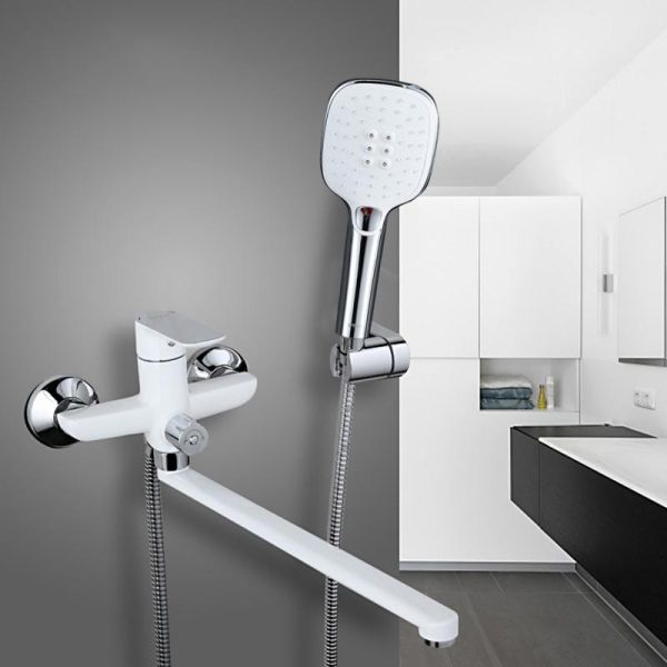 Смеситель для ванны Gappo Noar G2248 - стильная однорычажная латунная модель с поворотным изливом 35 см. Душевая лейка в комплекте. Цвет - хром / белый.