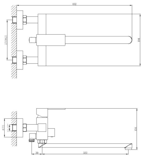 Керамический картридж 35 мм.Диаметр декоративных чашек 70 мм.Душевой гарнитур в комплекте.Межосевое расстояние (расстояние между выходом горячей и холодной трубы) 150 мм.Данное расстояние изменяется за счет входящих в комплект эксцентриков на 10 мм в большую или меньшую стороны.