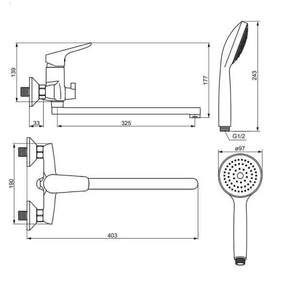 Смеситель для ванны и душа Damixa Jupiter 779500001 хромСмеситель для ванны и душа Damixa коллекции Jupiter - минималистичный дизайн, который находит отражение в простых геометрических формах и плавных линиях. Самая наполненная коллекция поражает своей эргономичностью и разнообразием функций. Четко выверенные пропорции продуктов делают их максимально комфортными в использовании на раковинах любого размера. Размер смесителя (длинный излив) (Ш/Г/В): 190x403x177 мм. Материал - латунь, ABS-пластик. Цвет - хром. Тип управления - однозахватный. Длина душевой штанги - 1500 мм. 1 режим ручного душа - Spray.