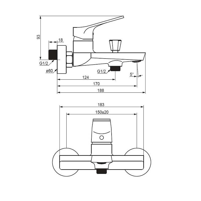 Смеситель для ванны и душа Damixa Merkur 401000300 черный