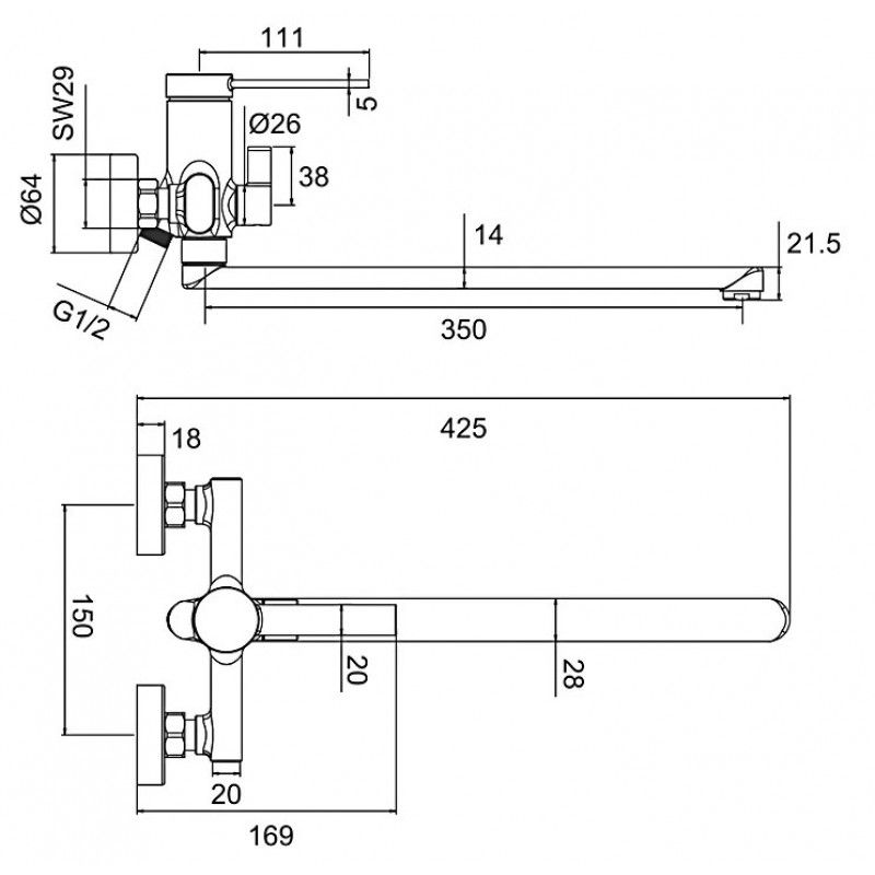 Длина излива: Длинный