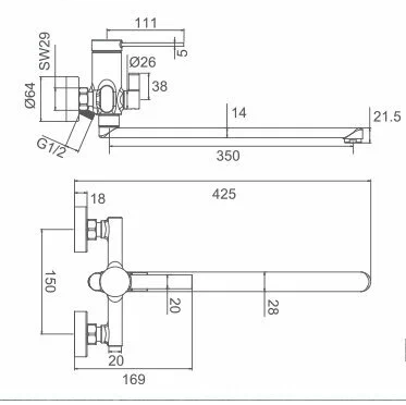 • Длина излива, см: