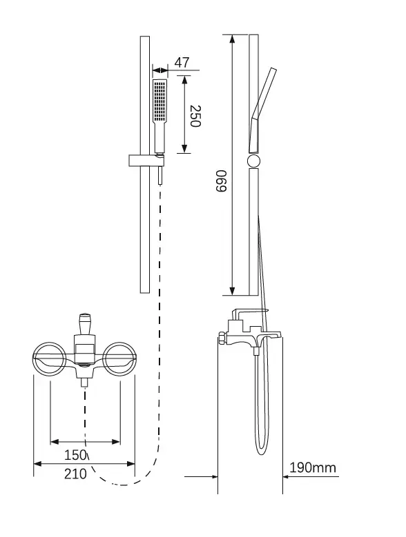 Смеситель для ванны и душа Milleau CRISTAL MLV6223BD-GM оружейный серый полуглянцевый Подробнее