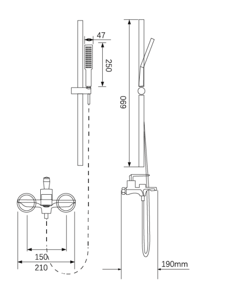 Смеситель для ванны и душа Milleau CRISTAL MLV6223BD-MW белый