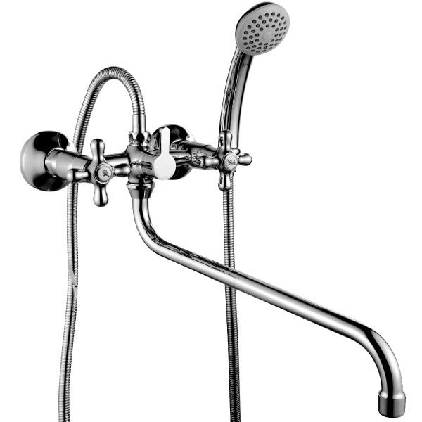 Универсальный двуручный смеситель для ванны и душа Rossinka H02-84 с круглым изливом 35 см.Согласно заключению ОАО НИИ Сантехники, смесители Россинка могут использоваться в жилых и нежилых помещениях и учреждениях разного профиля и соответствуют Российским условиям эксплуатации. Благодаря универсальному дизайну смесители послужат прекрасным дополнением к интерьерам типовых ванных комнат в любом стиле.Материал корпуса - высококачественная промышленная латунь с пониженным содержанием свинца.В комплекте: