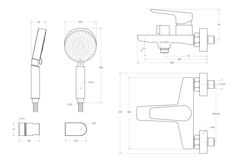 • Размер ручного душа, см: